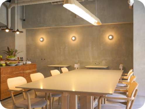 店内には個室、小上がり、テーブル席があり、全席に電源を完備。こども用の椅子もございます。 いつものランチやディナーはもちろん、歓送迎会やご家族のお祝いなど、さまざまなシーンでご利用いただけます。
